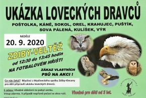 Myslivecký spolek Zdiby – Klecany zve na ukázku loveckých dravců v neděli 20. září 2020 od 12:30 hodin na fotbalovém hřišti ve Zdibech.
