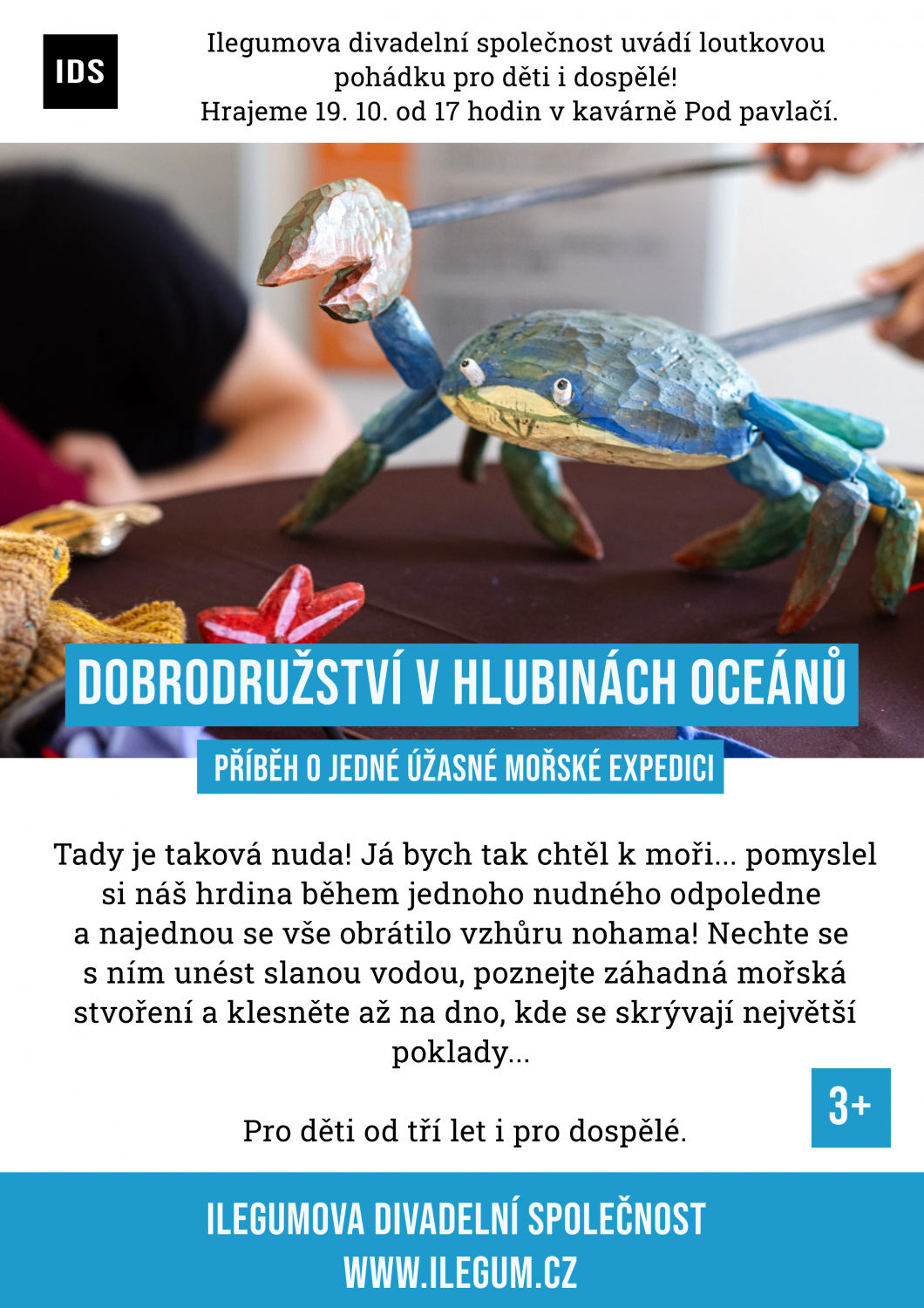 Ilegumova divadelní společnost zve na loutkovou inscenaci Dobrodružství v hlubinách oceánu.