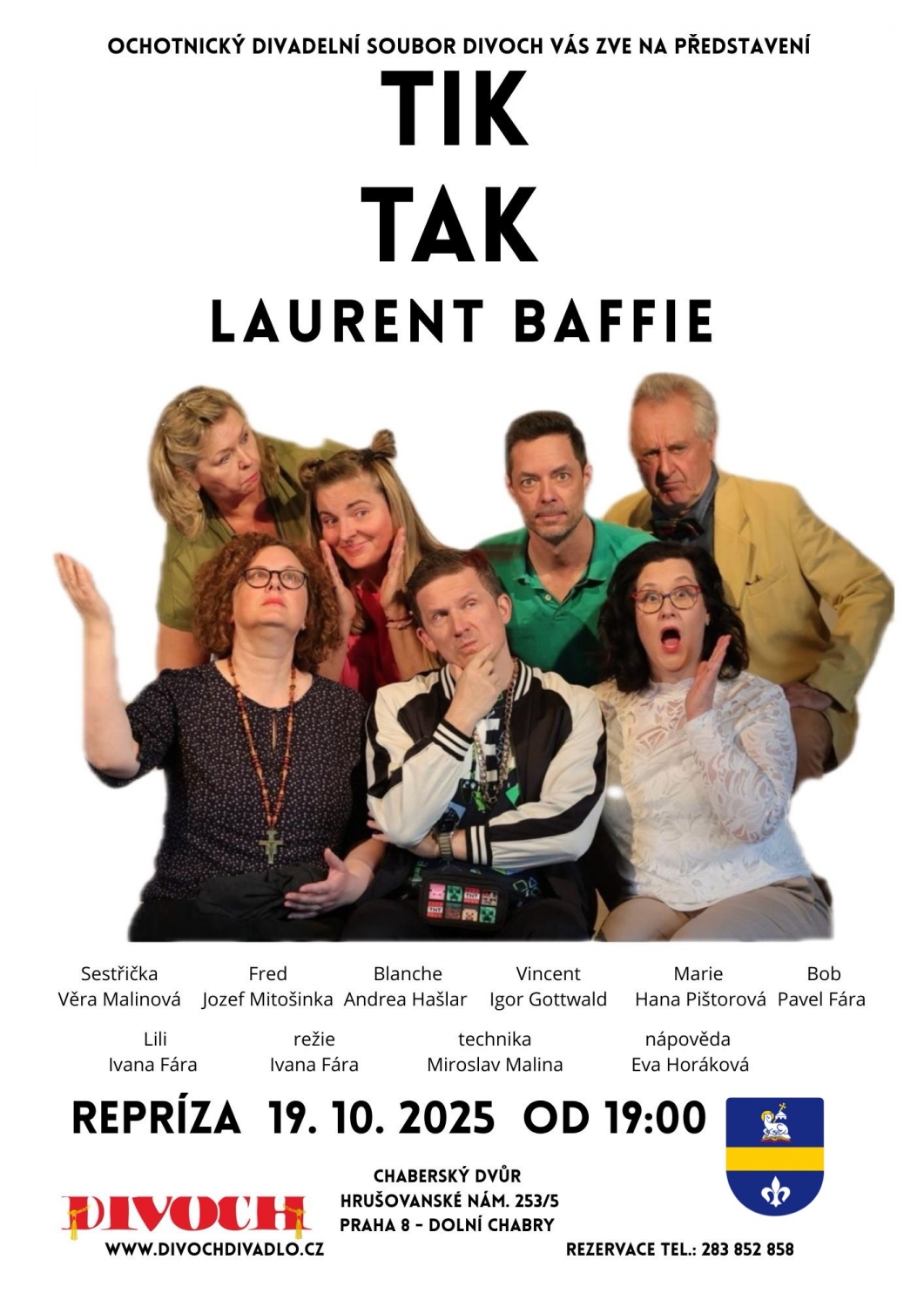 DIVOCH – Divadelní ochotníci chaberští si vás dovolují pozvat na reprízu hry z pera dramatika Laurenta Baffie s názvem TIK TAK.