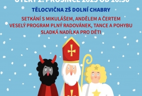TJ ZŠ Chabry zve na mikulášskou akci Taneček s Mikulášem. Na programu budou radovánky, tanec a pohyb, chybět nebude sladká nadílka pro děti.