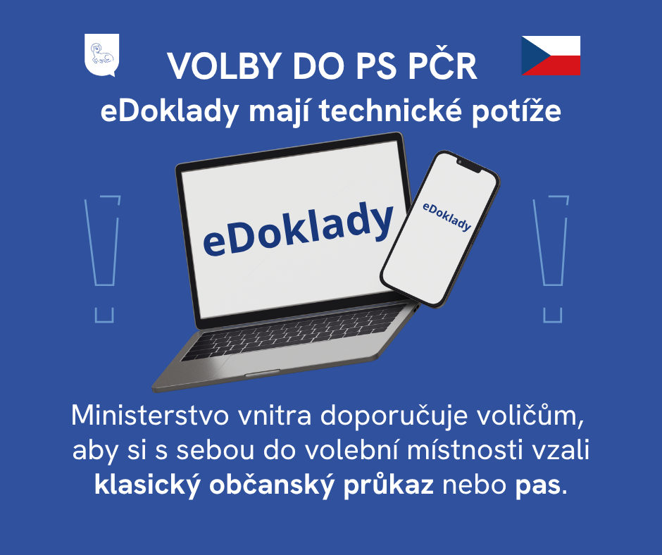 Ministerstvo vnitra z důvodu potíží s eDoklady doporučuje, aby si voliči vzali s sebou KLASICKÝ OBČANSKÝ PRŮKAZ nebo PAS, aby se vyhnuli případným potížím.