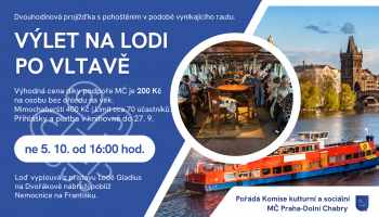 Kulturní a sociální komise RMČ zve všechny Chaberáky na říjnový výlet na lodi po Vltavě.