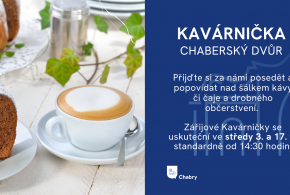 Zveme vás na setkání v KC Chaberský dvůr. Přijďte si posedět a popovídat si nad šálkem kávy nebo čaje a drobným občerstvením.