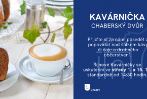 Zveme vás na setkání v KC Chaberský dvůr. Přijďte si posedět a popovídat si nad šálkem kávy nebo čaje a drobným občerstvením.