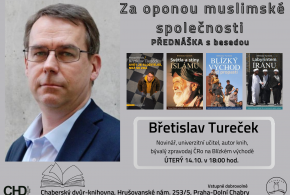 Zveme na další setkání z cyklu oblíbených novinářských besed. V čem se liší uspořádání rodiny a společnosti na Blízkém východě oproti tomu, co známe ve střední Evropě? Jakou roli v tom hraje náboženství a jakou například kmenové tradice? Novinář a univerzitní učitel Břetislav Tureček strávil v muslimském světě řadu let, působil tam mj. jako stálý zpravodaj Českého rozhlasu a napsal o Blízkém východě několik knih. V rámci přednášky se podělí o unikátní zkušenosti, které nám umožní lépe pochopit, co se odehrává v zákulisí neklidné části světa přímo na prahu Evropy.